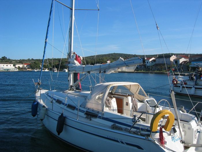 ... und unsere Hanni, eine Bavaria 34, mit Patentreff und Rollfock der Segelschule Marx in Utting am Ammersee