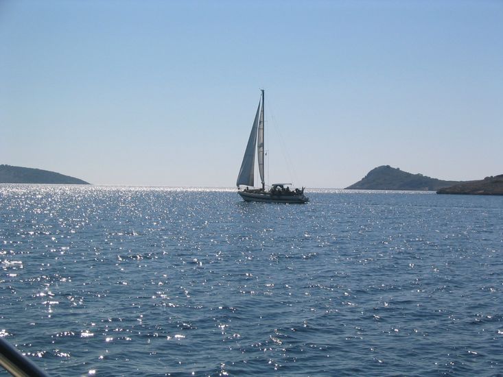 Entlang der Küste von Kornat, rechts vor uns Levrnaka