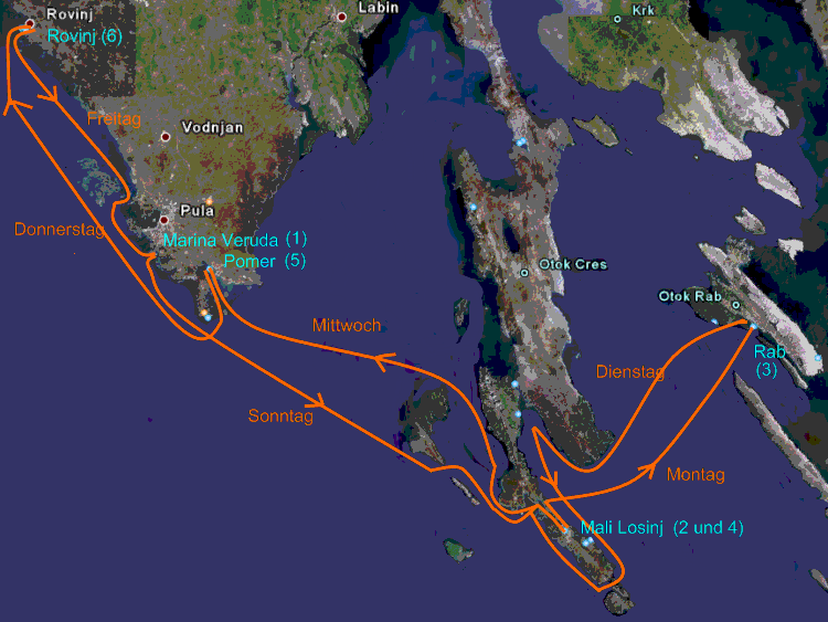1. Vor Istrien und im Kvarner [ein Klick auf die Grafik und dann per rechtem Pfeil weiterblättern].